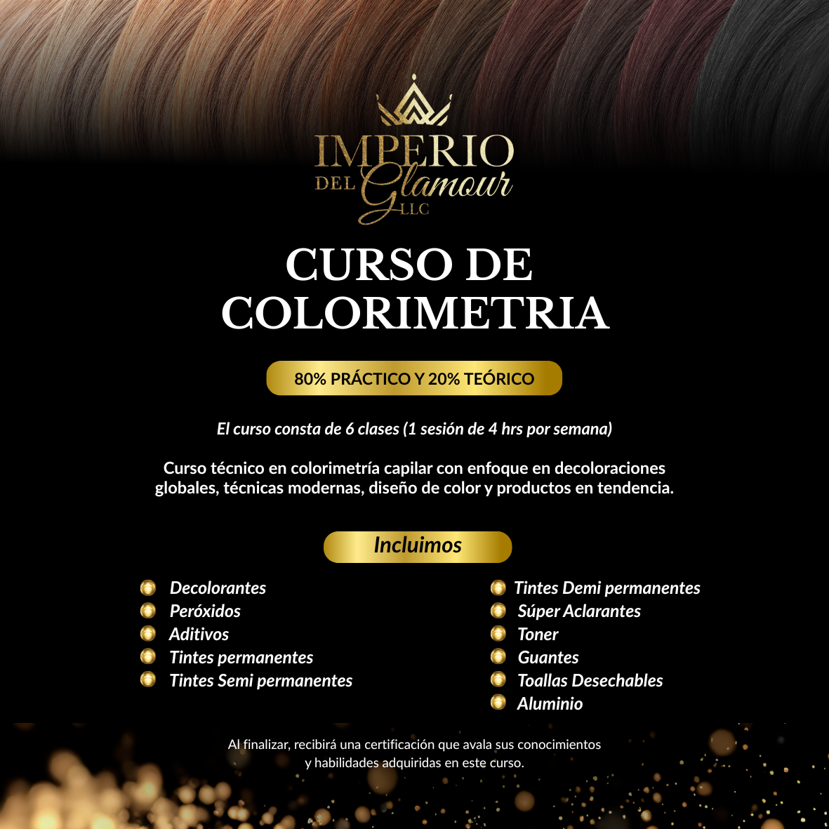 Curso técnico en colorimetría capilar con enfoque en decoloraciones globales, técnicas modernas, diseño de color y productos en tendencia.