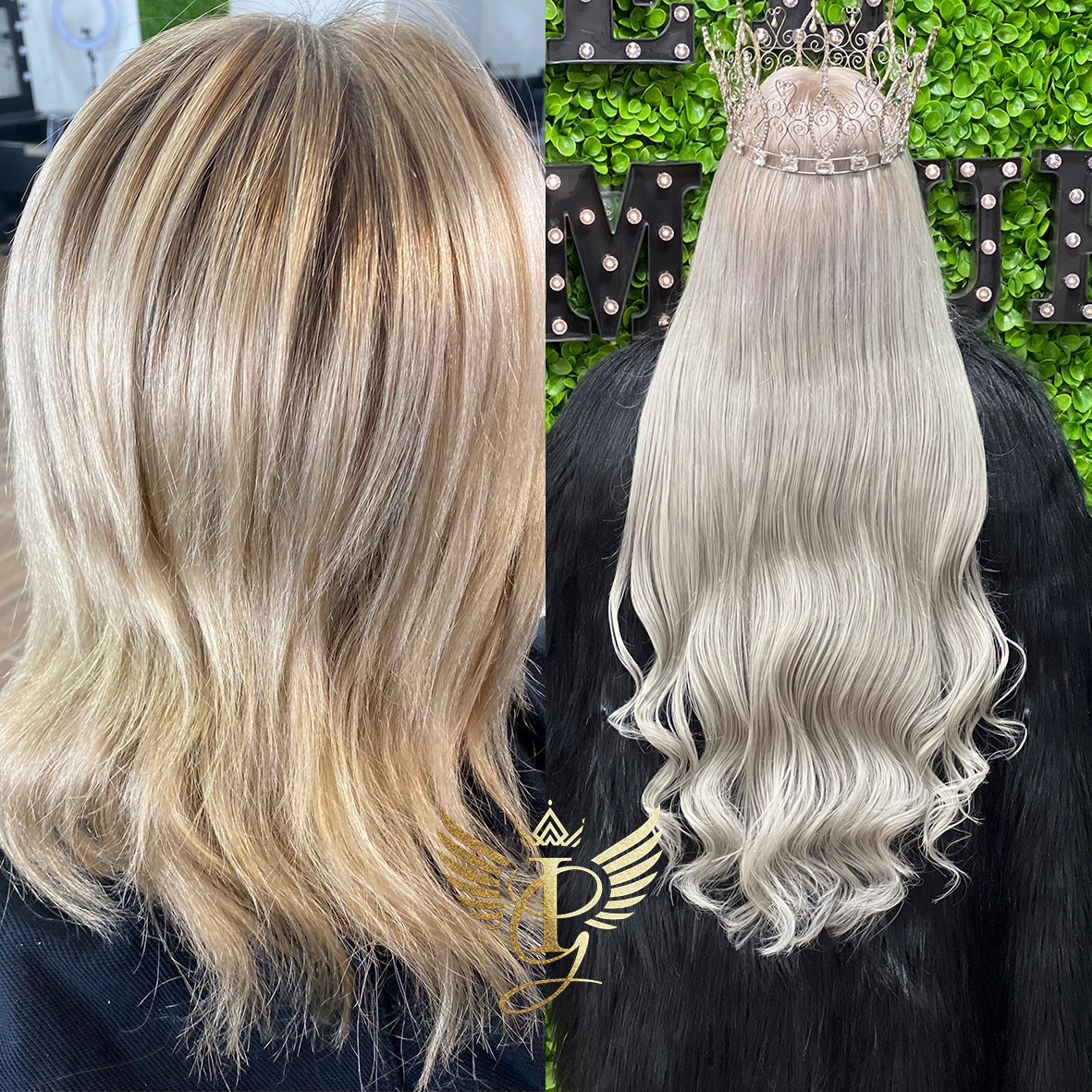 Trabajamos con 100 gramos de extensiones de cabello 100% humano, disponibles en una amplia gama de tonos y efectos de color personalizados, como degradados, rayitos y balayage, para realzar tu estilo único.
