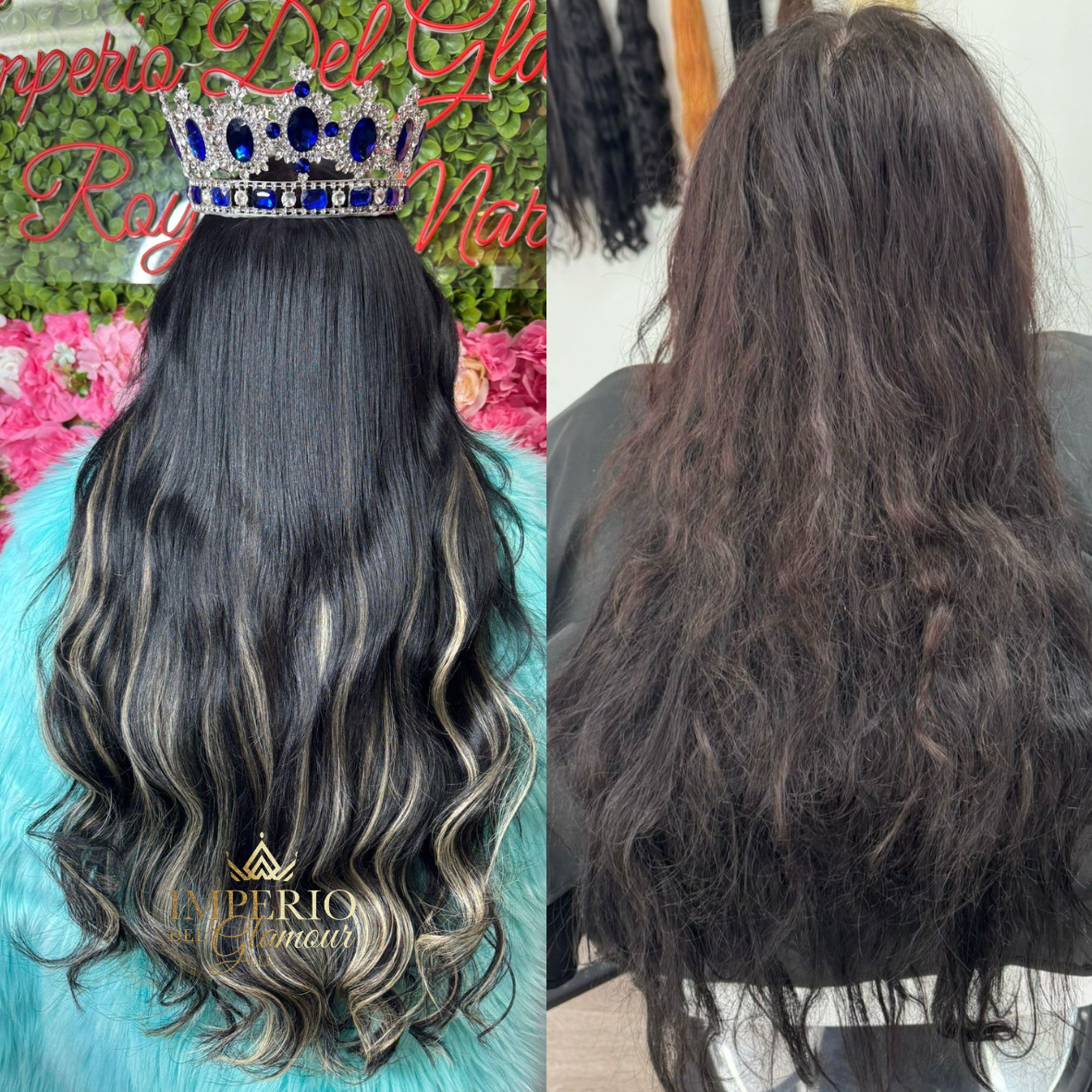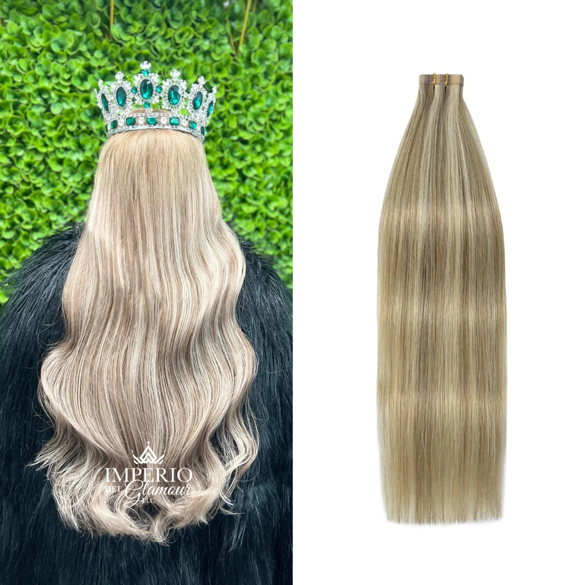 100 gramos | Las extensiones Tape con rayitos son perfectas para quienes desean un efecto multidimensional sin comprometer la salud de su cabello natural. Su combinación de tonos estratégicamente colocados aporta volumen y un acabado de color natural.